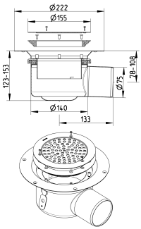 BLÜCHER Domestic-150 justerbar afløb for vinylgulve, med vandret Ø75mm udløb.