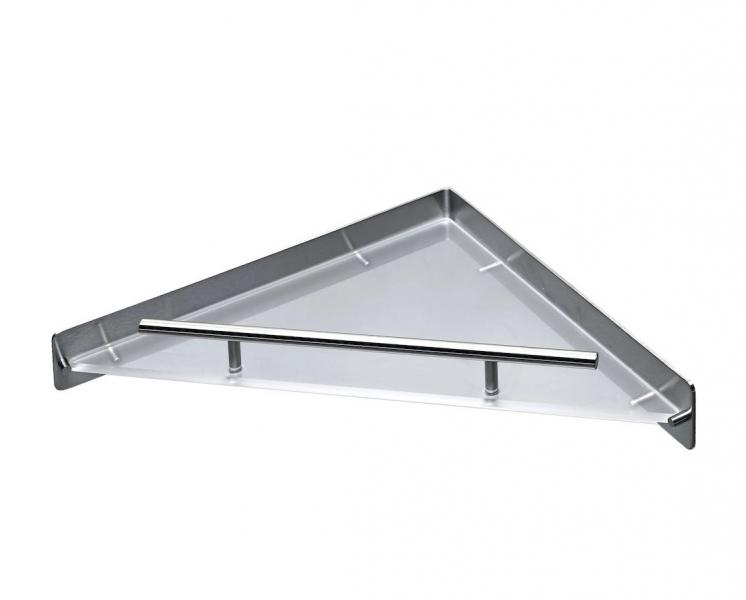 Minimalistisk hjørnehylde til badet i stål og akryl.