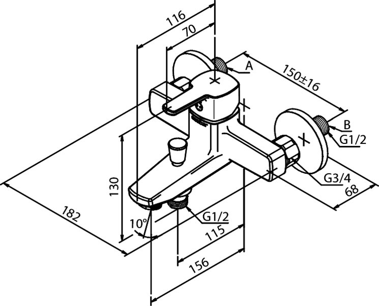 Damixa Pine vægbatteri til kar/brus