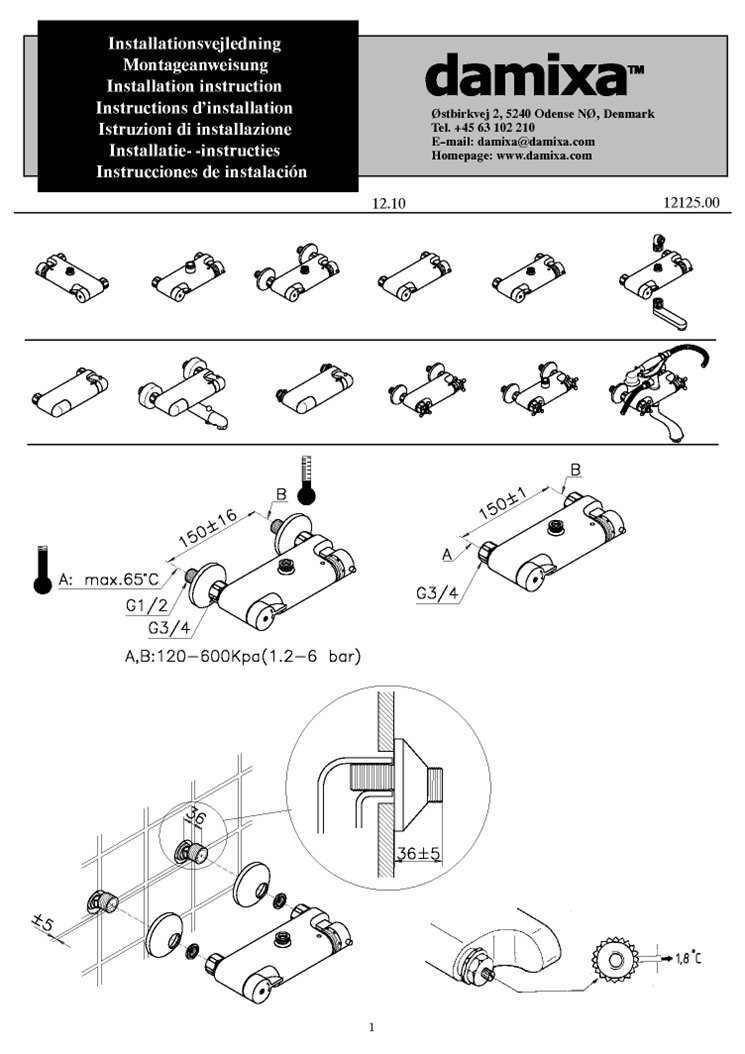 • Vandforbrug max.12 l/m (v/ 300kpa)