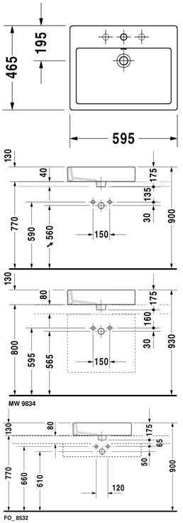 Duravit Vero 60 fritstående bowlevask - 1 hanehul