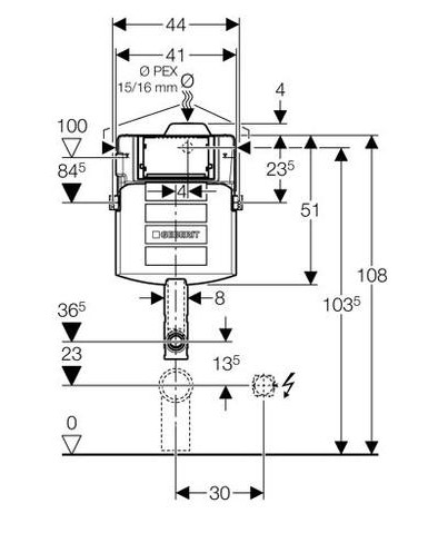 Indbygningscisterne UP320, frontbetjent, med PEX-tilslutning