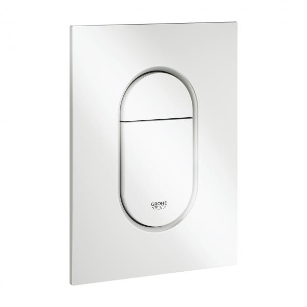 Grohe Arena Cosmopolitan betjeningsplade - Alpinhvid GROHE Arena Cosmopolitan trykpladen blander to klassiske GROHE former – rektangel og oval – og skaber et stilfuldt design, der er en perfekt prik over i'et i ethvert moderne badeværelsesrum. Den lille størrelse (130 x 172 mm) er ny i denne serie og sikrer, at du har mulighed for at vælge det helt rigtige til dit badeværelsesdesign. Med en skinnende GROHE StarLight belægning, der er ridsefast og nem at rengøre, har vægpladen en glans, der holder gennem hele produktets levetid. Og så er det også miljøvenligt. Systemet med dobbeltskyl gør det muligt at vælge en skyllemængde på enten 3 eller 6 liter (eller 3 og 4,5 liter i visse keramiske kummer), og det er muligt at stoppe et fuldt skyl med en lille knap. Den integrerede GROHE EcoJoy skylleteknologi reducerer desuden dit vandforbrug med op til 50 %! Installationen, der kræver en tilknyttet inspektionsskakt (40 911 000), er enkel og værktøjsfri. GROHE Arena Cosmopolitan trykpladen – en opgradering til badeværelset, der balancerer elegant moderne stil med ydeevne, som du kan stole på!