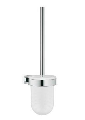 Grohe Essentials Cube toiletbørste til væg En toiletbørste er nødvendig på ethvert badeværelse. Synderligt interessant er den ikke, men derfor kan den godt være dekorativ at have på badeværelset alligevel. Grohe Essentials Cube toiletbørste har et stilrent design og en fin udformning. Den bliver tilmed løftet op fra gulvet ved at hænge på væggen. Det giver med det samme et ryddeligt indtryk! Grohes toiletbørste holder til at blive brugt år efter år - det eneste der skal udskiftes er børstehovedet. Det er muligt at købe løse toiletbørstehoveder i hvid og sort. Se relaterede varer. Specifikationer: