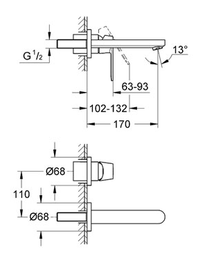 GROHE Eurosmart Cosmopolitan 2-huls-håndvaskbatteri – justerbar mousseur, der giver en ideel vandstråle Dette Eurosmart Cosmopolitan 2-huls-håndvaskbatteri er designet til vægmontering. Den separate indbygningsdel (32635000) skal købes separat. Armaturet er let og ubesværet at betjene takket være GROHE SilkMove® teknologien. Dette armatur passer perfekt i det moderne badeværelse. Armaturet er flot at se på og en fornøjelse at se på, og så er prisen attraktiv. Med den blanke GROHE StarLight® krombelægning, som ikke kun ser flot ud, men som også er robust og let at vedligeholde. En aftørring med en blød klud er alt, hvad du skal bruge, for at bevare den blanke glans i lang tid. Dette håndvaskbatteri er udstyret med GROHE Aquaguide, en justerbar mousseur i spidsen af tuden. Den gør det muligt for dig at fokusere strålen præcist på det sted, du ønsker.