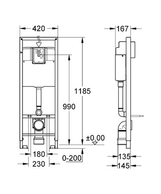 Grohe Rapid SL indbygningscisterne 113 cm (smal model) - Frontbetjent