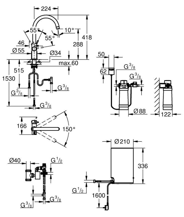 • Et ubesværet svingfelt på 150° sikrer total komfort og praktisk funktionalitet