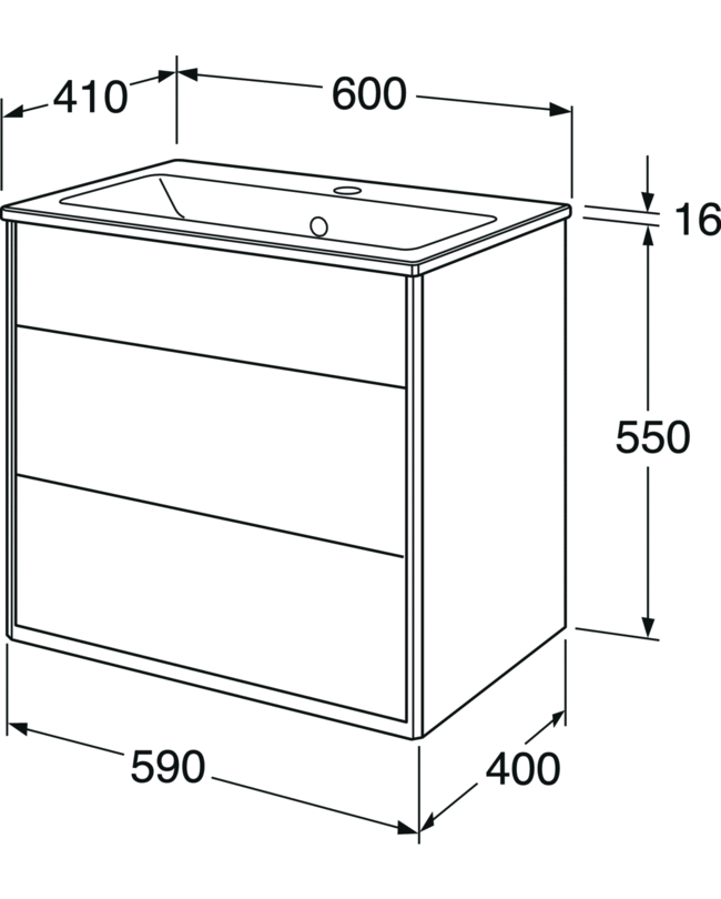 • Lille dybde (41 cm), som gør det velegnet til mindre badeværelser