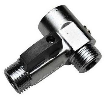 Securex (tidligere Freese) t-stykke med kontraventil. DN15/15/15 M/N/N, forkromet med greb og 1 kuglehane DR.