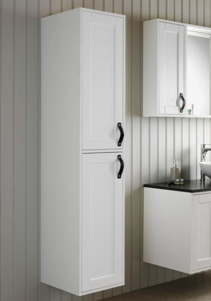 Rummeligt højskab med to låger med dæmpet lukkefunktion, som kan monteres højre- eller venstrehængt. Du vælger selv, hvilken vej døren skal åbnes. Højskabet har fire flytbare glashylder. Skabets dybde giver god plads til f.eks. store håndklæder. Eludtag fås som tilvalg. Vælg håndtag eller knopper, som passer til din stil. Mål: H 1665 x D 400 x B 350 mm |