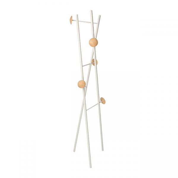 Lastein Sir James 4 stumtjener m/5 knager - Hvid/eg Med Lastein Sir James 4 stumtjener er den klassiske stumtjener blevet dekonstrueret og fået en helt ny form. Ikke blot er tøjstativet praktisk og funktionelt, men det er også skulpturelt i sin asymmetriske form. Selv når stumtjeneren er tom, vil den stå flot og dekorativ i rummet. Stumtjeneren her består af et metalskelet, hvorpå der sidder træknopper, hvor man hænger sin jakke, taske mm. Specifikationer: