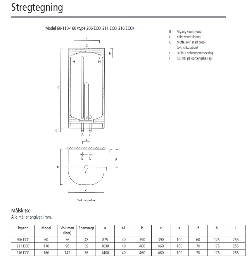 Metro El-vandvarmer 206 ECO 56 liter Smart control rør ned inkl sikkerhedssæt. Smart Control er en intelligent styring, der kun opvarmer den mængde vand, der skal bruges. Det gør den ved løbende at aflæse det faktiske forbrugsmønster i husholdningens vandforbrug og varmer dermed kun den mængde vand op, der skal bruges til den rette tid. Det sparer energi, og det sikrer, at der altid er tilstrækkelig med varmt vand til hele familien – slut med kolde brusere!