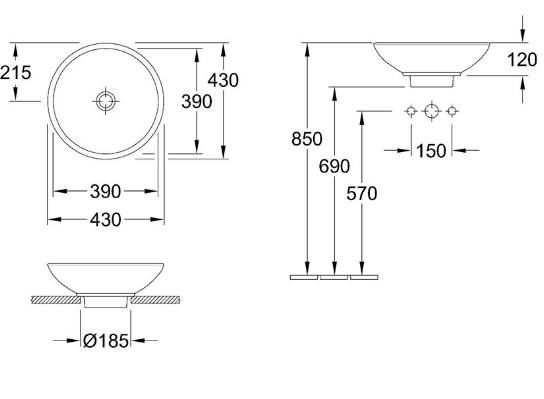 V&B Loop&Friends 43 fritstående bowlevask - Med overløb - Ceramic+ Elegant håndvask i helt rundt design fra Villeroy & Boch. En fritstående bowlevask som denne bringer en moderne lethed og elegance ind på badeværelset - og den kan sammensættes med badeværelsestilbehør i den stil og de farver du ønsker. Håndvasken har fået overfladebehandlingen Ceramic+, hvilket gør overfladen utrolig slidstærk, smudsafvisende og nem at rengøre. NB - Billede er uden overløb, denne vask er MED overløb. Specifikationer:
