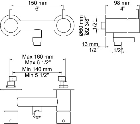 Centerafstand: 140-160 mm