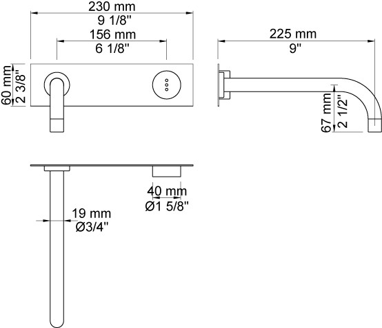 Vola Indbygningsventil til en slags vand, til berøringsfri betjening Fast udløb, 225 mm, ø19 mm Dækplade Krom 16 ½''RG